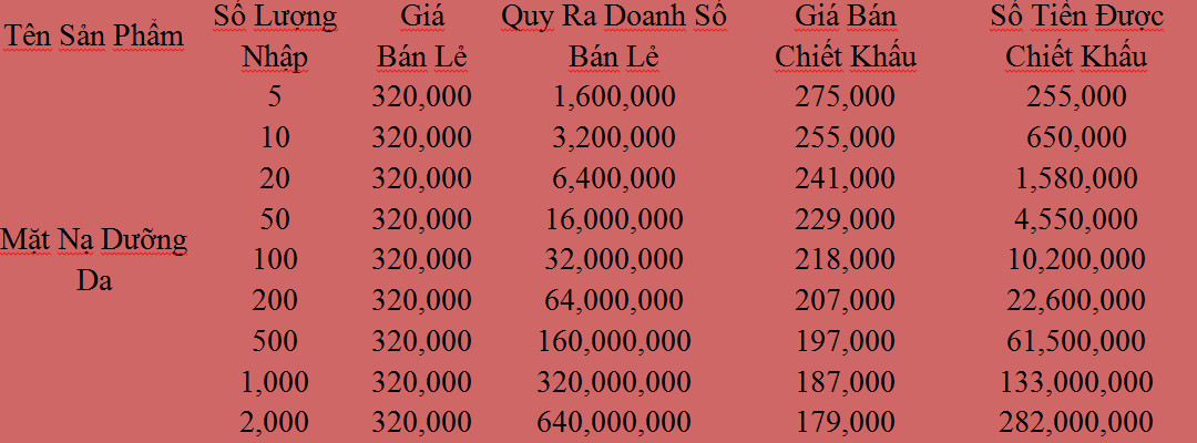 Mức chiết khấu sẽ tương ứng với từng sản phẩm, cụ thể như sau: