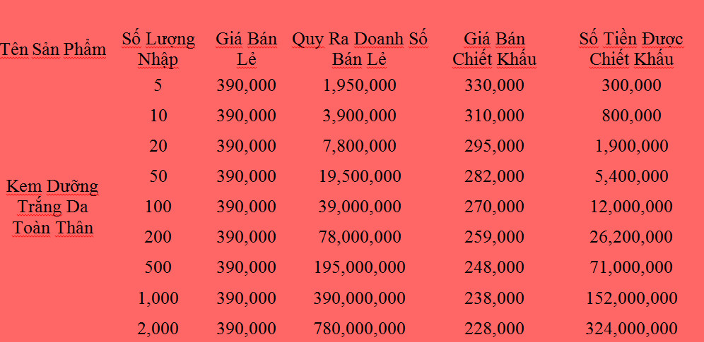 Mức CKBL phụ thuộc trực tiếp vào qui mô doanh số mua hàng tương ứng của bạn và tuyến dưới, được cộng dồn khi bạn đặt mua hàng nhiều lần trong tháng.