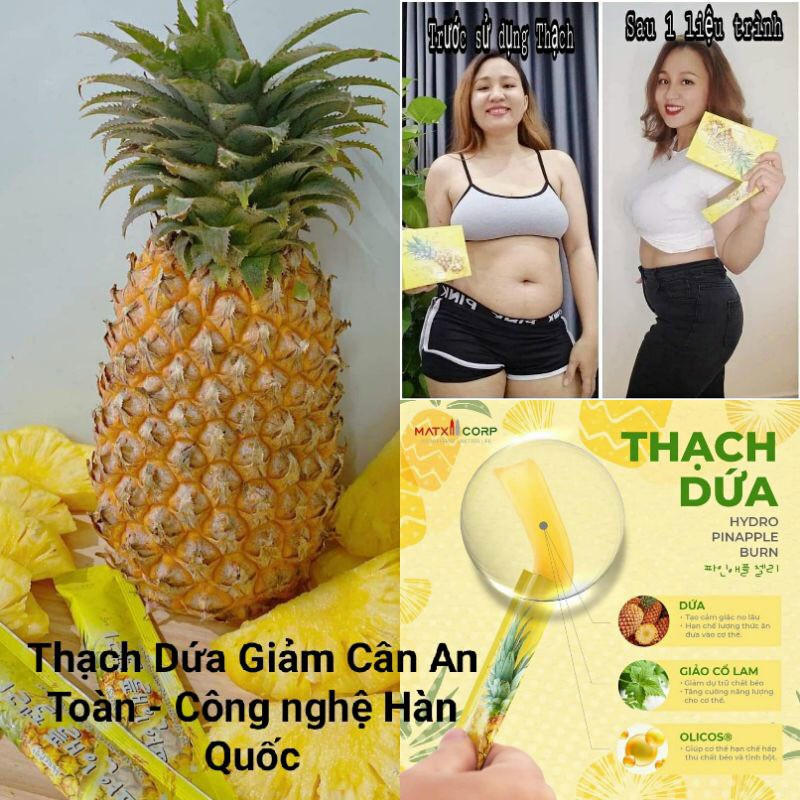 • Thạch dứa là loại sản phẩm đứng thứ 2 về hiệu quả tiêu diệt và đào thải mỡ thừa, đặc biệt là các loại mỡ tích tụ lâu ngày trong cơ thể. Sản phẩm có tên tiếng Anh là Hydro Pinapple Burn.