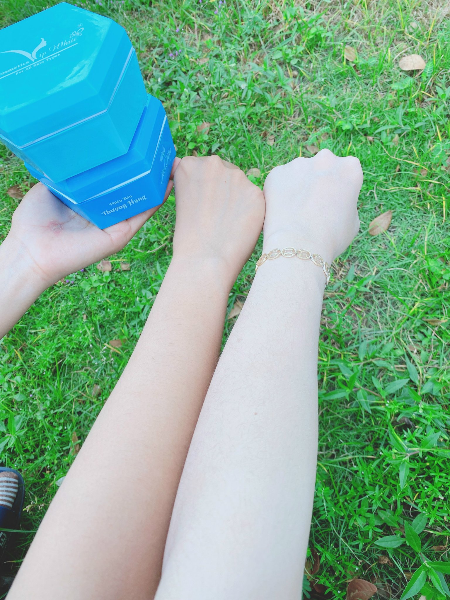 Sử dụng kem body kích trắng mạnh (xanh đậm) vào ban ngày vì trong kem có chống nắng spf45 +