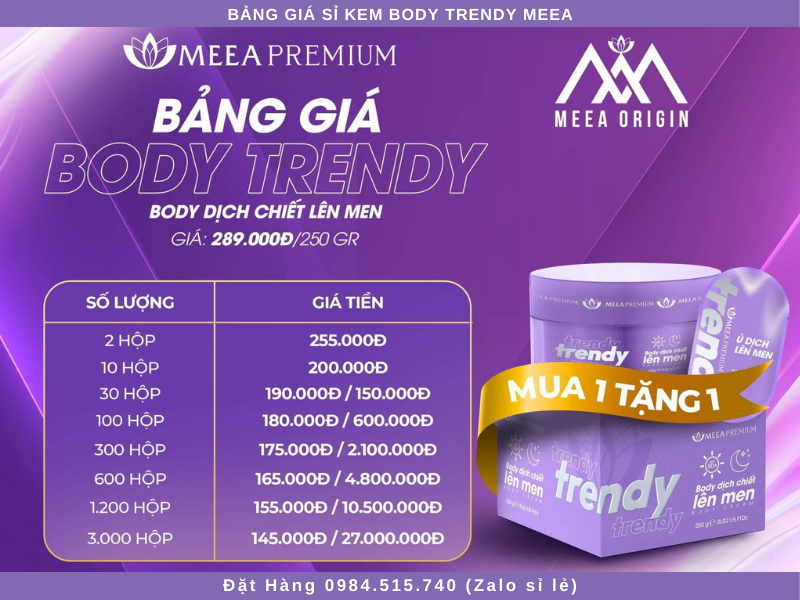 Bảng giá sỉ kem body trendy meea dịch chiết lên men