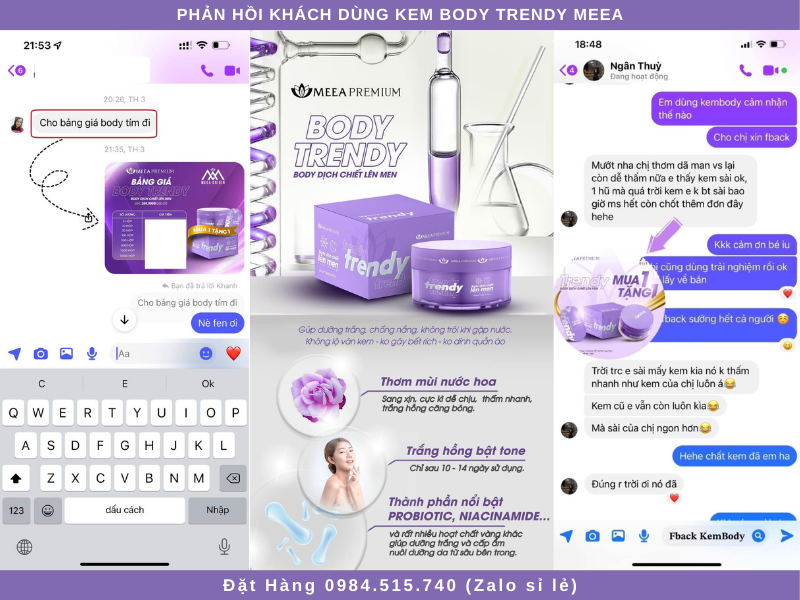 Phản hồi khách dùng kem body trendy meea dịch chiết lên men