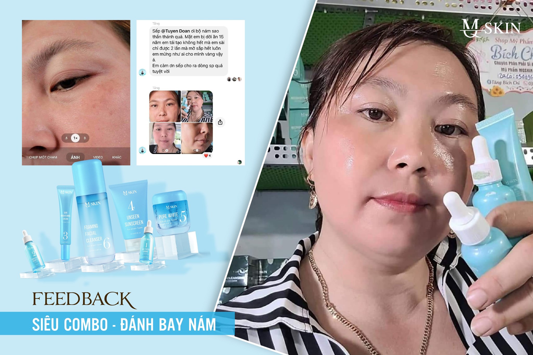 Vậy tại sao bạn không thử “đuổi” những nốt thâm sạm nám đó cùng Bộ kem trị nám châu âu mqskin