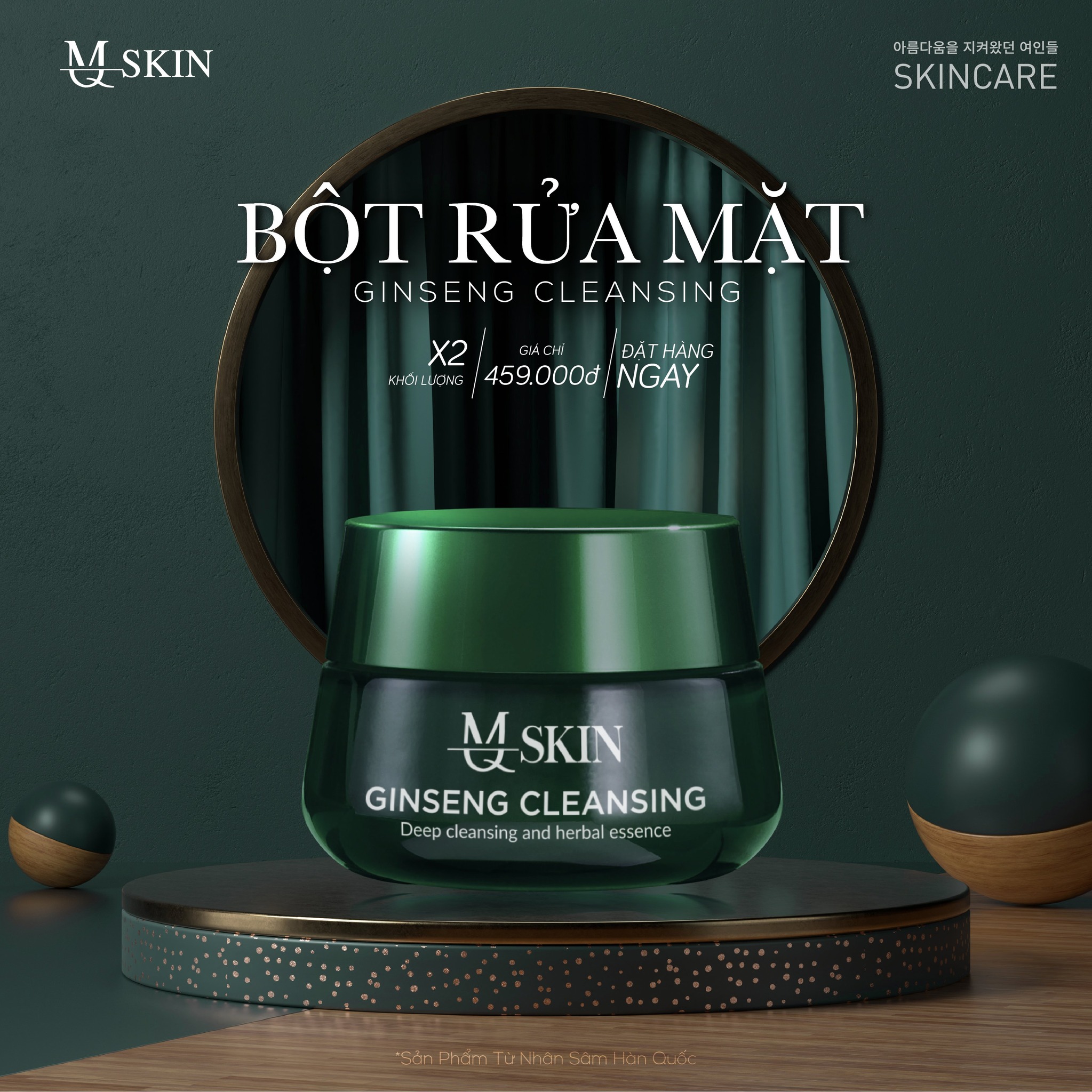Bột rửa mặt nhân sâm mq skin Chứa chiết xuất từ NHÂN SÂM & NHUỴ HOA NGHỆ TÂY giúp làm dịu da đồng thời sát khuẩn nhẹ nhàng, cân bằng độ pH cho da.