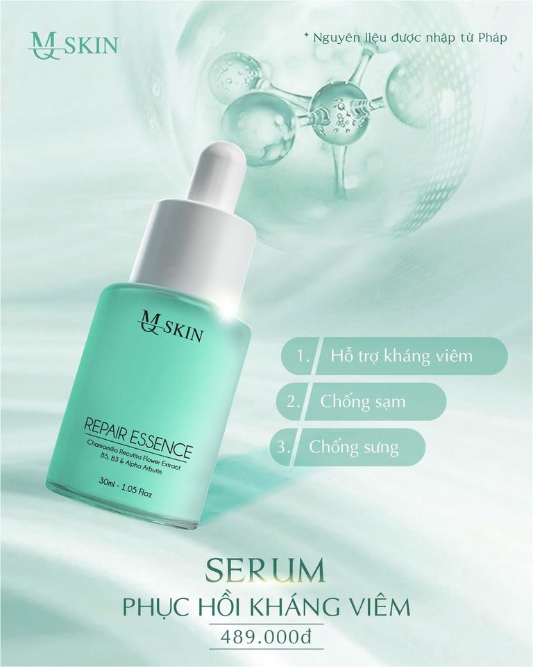 Serum kháng viêm phục hồi mq skin repair essence x5 có những nguyên liệu từ thiên nhiên có ng dụng làm dịu vết thương, giảm cảm giác ngứa rát, ngăn ngừa vi khuẩn, giúp da mau lành hơn. Nếu bạn bôi SERUM lên lúc đang bị khô, đau rát hoặc ngứa thì những cảm giác này sẽ dịu xuống rất nhanh.