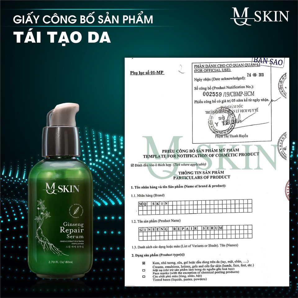 THÔNG TIN SẢN PHẨM - Tên sản phẩm: Serum Thay Da Nhân Sâm MQ Skin