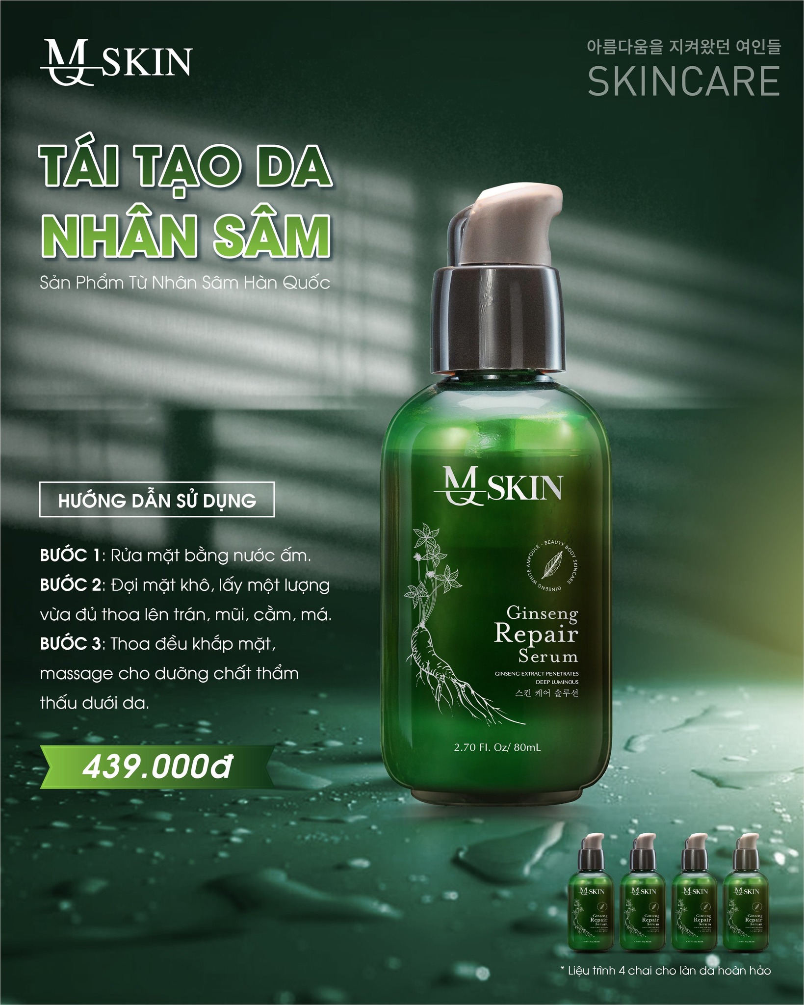 + Ưu đãi mua 01 chai serum thay da nhân sâm mqskin giá 439k tặng 01 chai + miễn phí giao hàng.