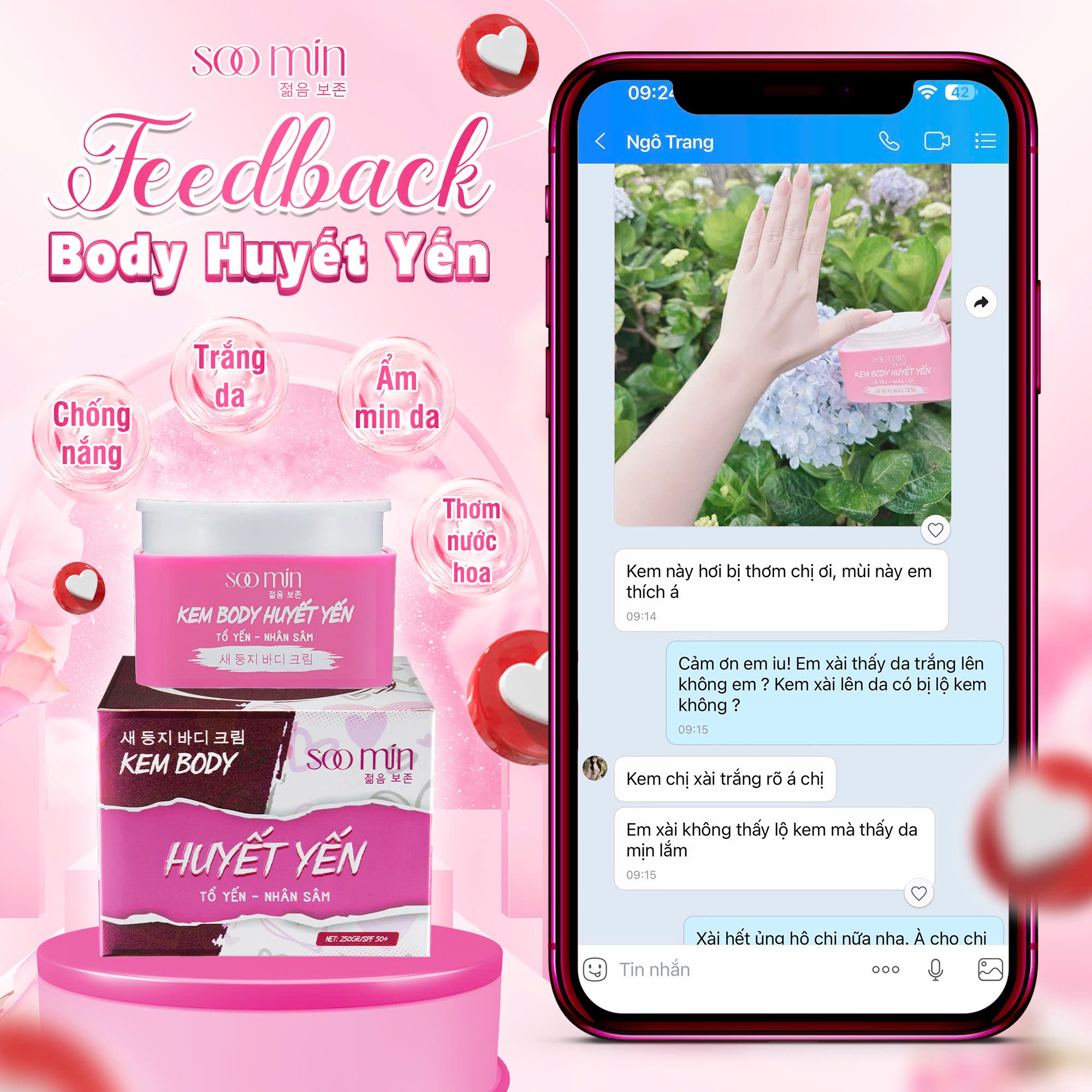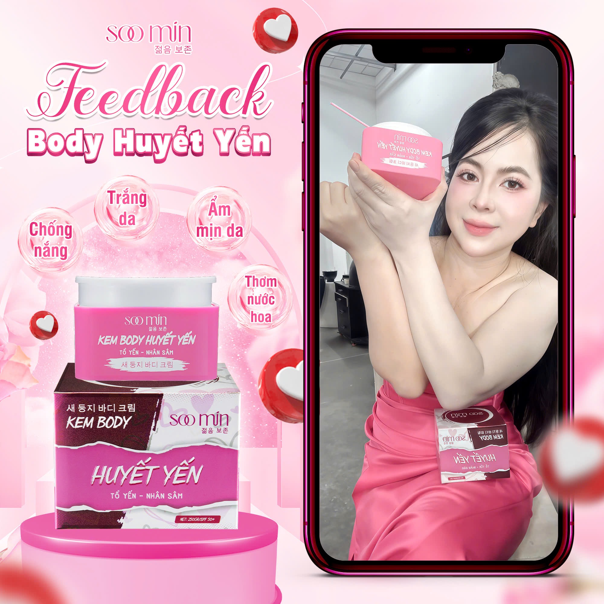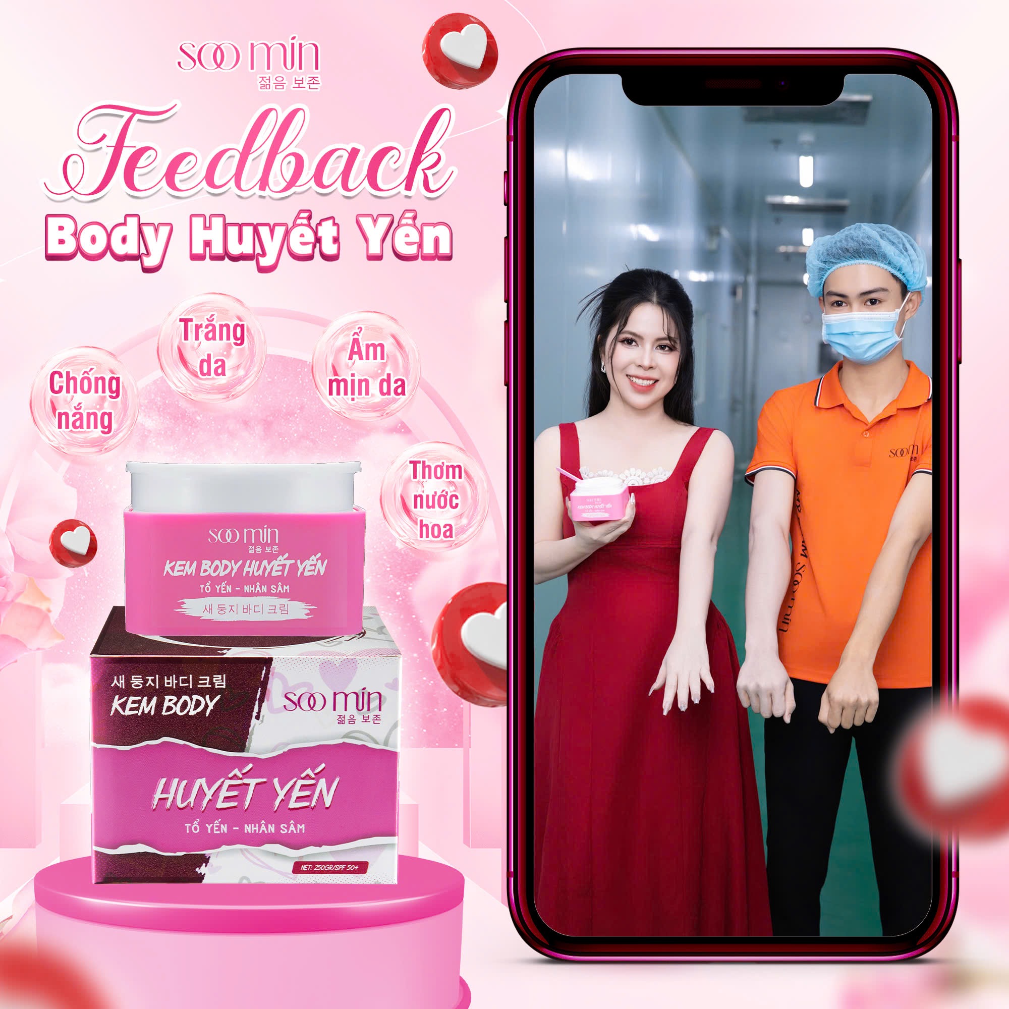 Với hàng ngàn phản hồi tích cực từ khách hàng, kem body Huyết Yến Soo Min đang trở thành "vũ khí làm đẹp" không thể thiếu của phái đẹp hiện đại. Hãy trải nghiệm ngay để cảm nhận sự khác biệt!
