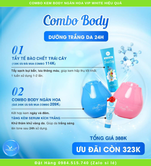 Combo kem body ngàn hoa vip white