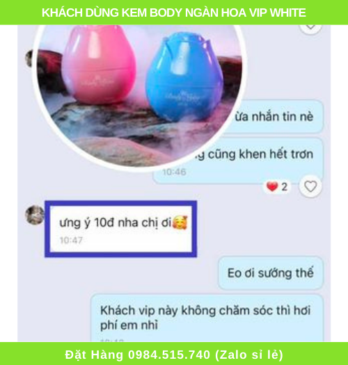 Phản hồi khách dùng kem body ngàn hoa vip white