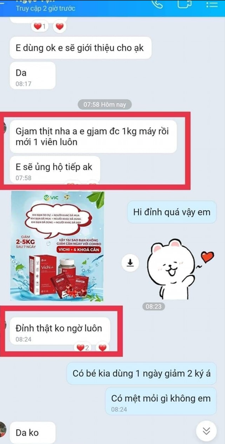 Phản hồi khách dùng giảm cân vichi
